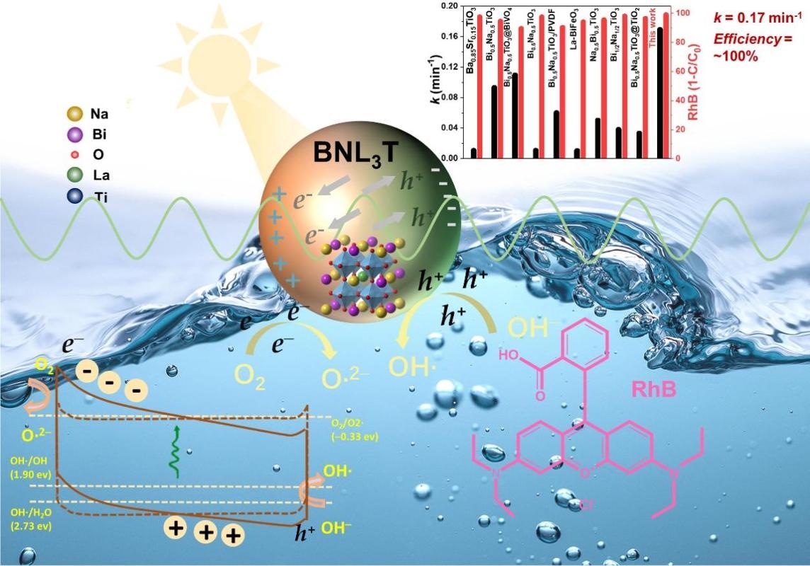 随着工业生产规模扩大,有毒染料的使用量逐年攀升,其引发的持久性水污染问题正受到全球关注。这类污染物不仅难以自然降解,还会通过水体渗透至土壤和地下水,对生态系统造成连锁破坏。环保监测数据显示,传统处理技术对有毒染料的降解效率普遍偏低,导致大量有毒芳香族中间体及残留污染物长期潜伏在自然环境中,对动植物生存和人类健康构成潜在威胁。此前,研究人员曾寄望于半导体铁电体材料解决这一难题。这类材料因自身具有自发极化特性,可通过内部形成的极化场实现光催化降解,但其实际应用中存在两大短板:一是对光能的利用效率不足,二是电荷载流子分离速度缓慢,导致处理周期冗长,且降解效率始终难以突破90%。这一技术瓶颈成为制约水污染治理的关键障碍。