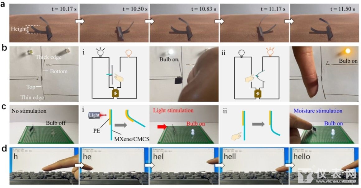 传感器等。相关成果以题为“MXene/Carboxymethyl Chitosan Moisture Responsive Soft Actuator with Diode-Like Actuation for Versatile Applications Driven by Human Metabolism”的论文发表在《Advanced Science》上。