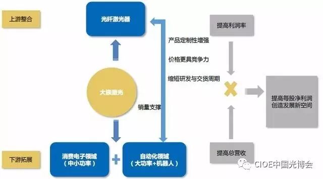 大族激光目前已经具备了自产光纤激光器的能力,从而解决了激光设备核心部件依赖进口的问题,从长期来看,大族激光的激光器自产将为公司带来利润率提高+竞争力提升的双重好处;此外,公司积极布局激光设备在更广泛的工业领域的应用,拥抱工业自动化趋势,打通上下游。从长期来看,公司的核心技术不断巩固,成长逻辑清晰,行业地位将进一步提升。