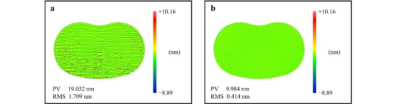 实验结果非球面镜面形误差检测结果(a)加工前面形(b)加工后面形